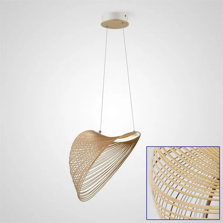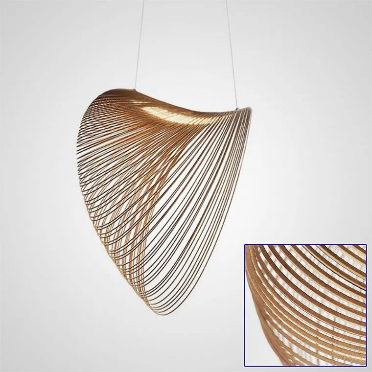 Серия подвесных светодиодных светильников с купольным абажуром из тонких деревянных прутьев