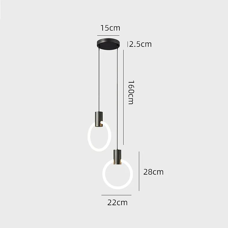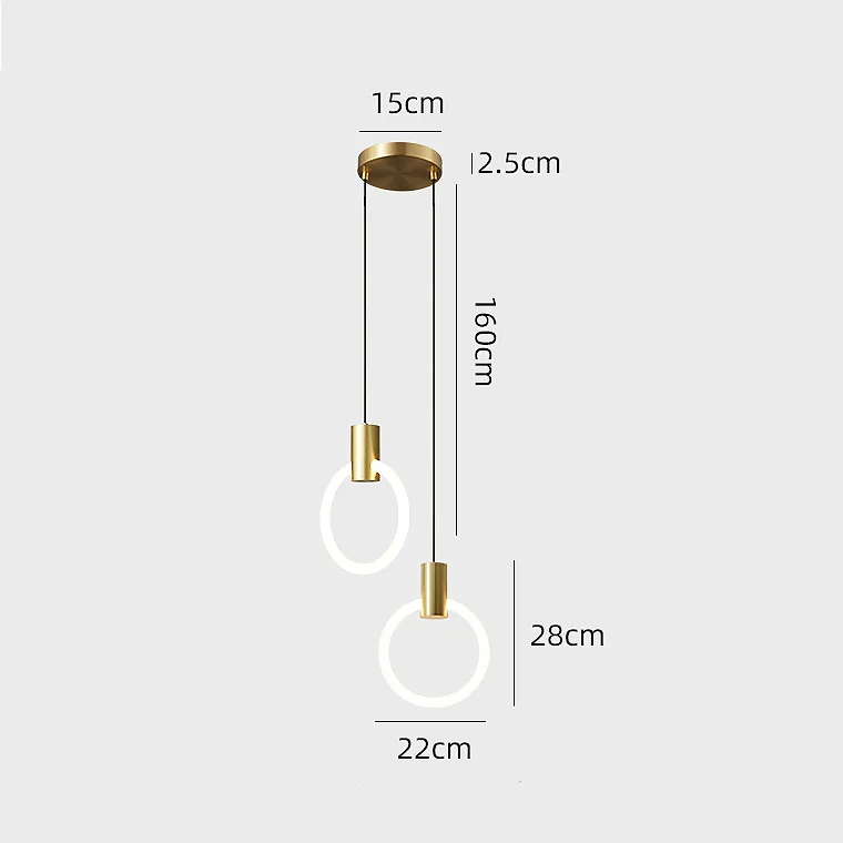 Готовая комбинация подвесных светодиодных светильников c двумя светящимися кольцами в латунном корпусе