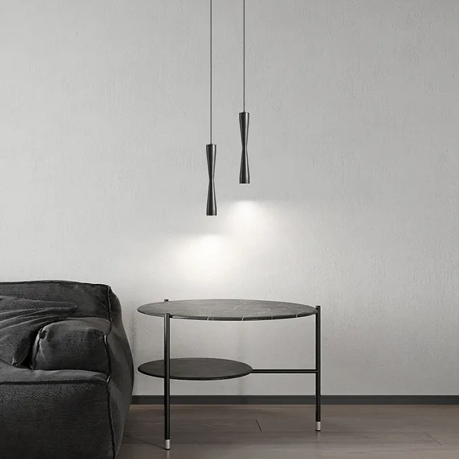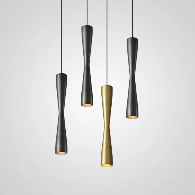 Готовая комбинация подвесных светодиодных светильников c двумя светящимися кольцами в латунном корпусе