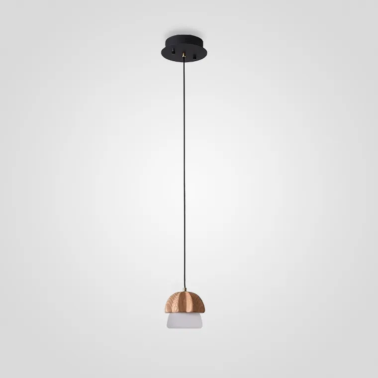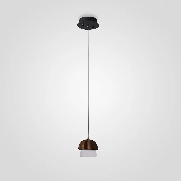 Серия дизайнерский подвесных светильников с круглым плафоном и деревянным абажуром в флористических мотивах