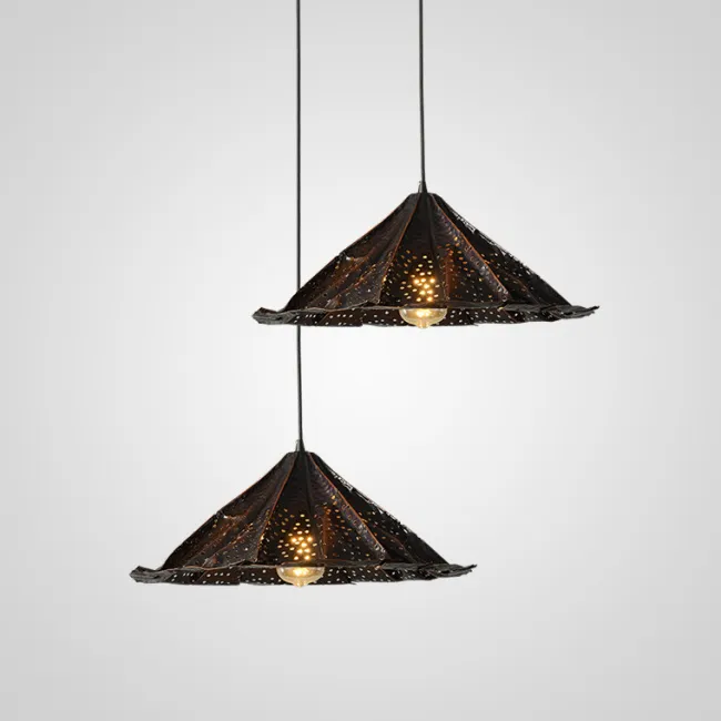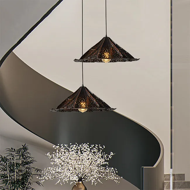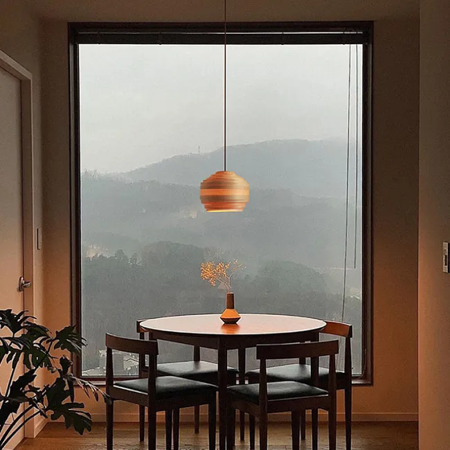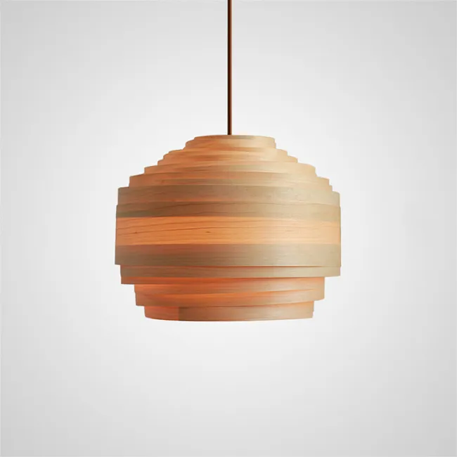 Серия дизайнерский подвесных светильников с круглым плафоном и деревянным абажуром в флористических мотивах