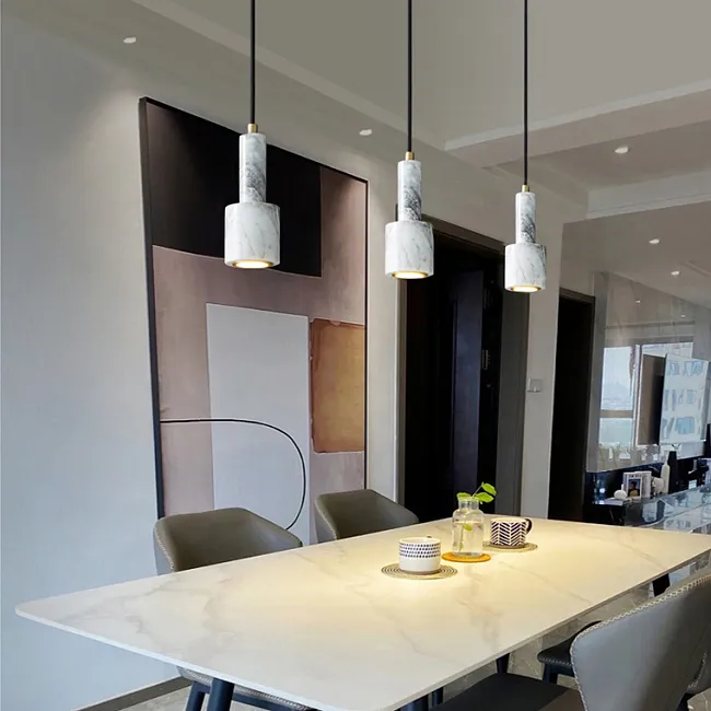 Серия подвесных светодиодных светильников из металла и мрамора