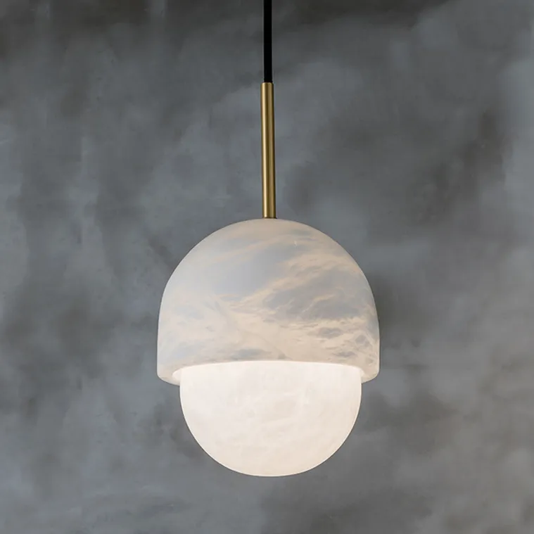 Дизайнерский подвесной светильник с грибовидным плафоном из натурального белого мрамора