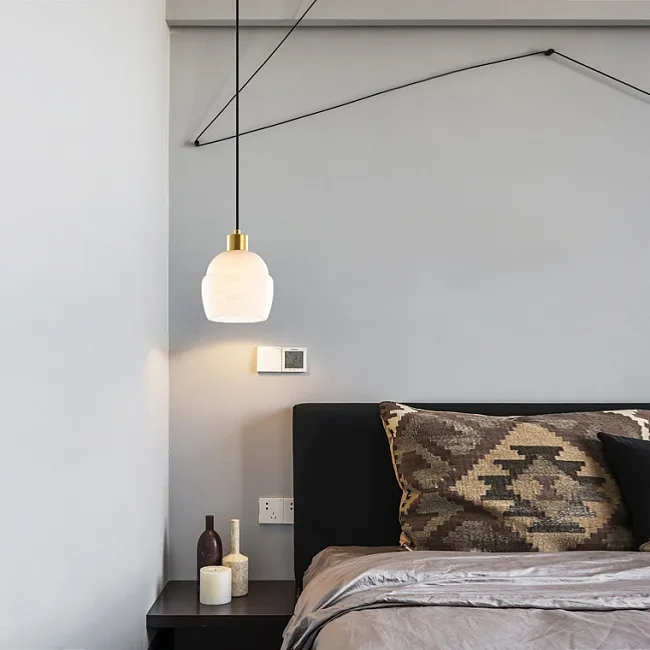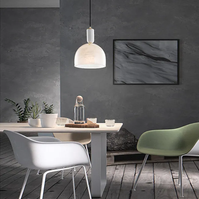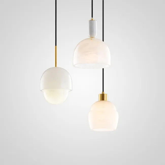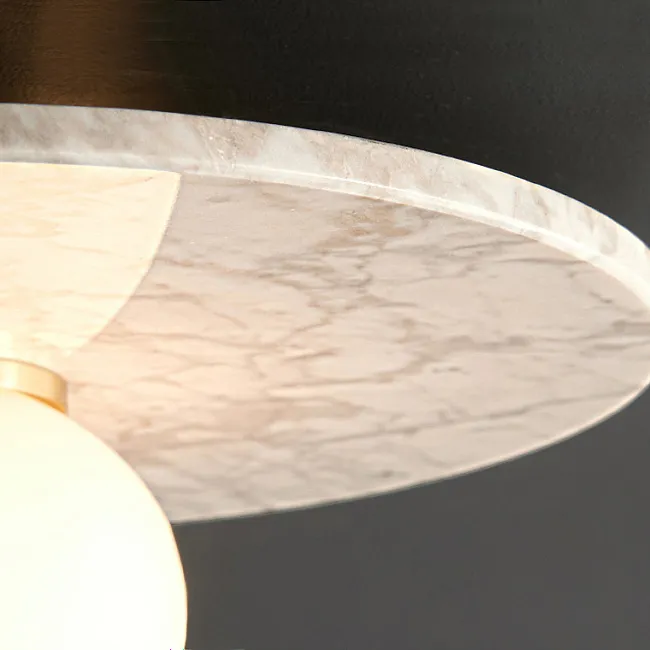 Дизайнерский подвесной светильник с грибовидным плафоном из натурального белого мрамора