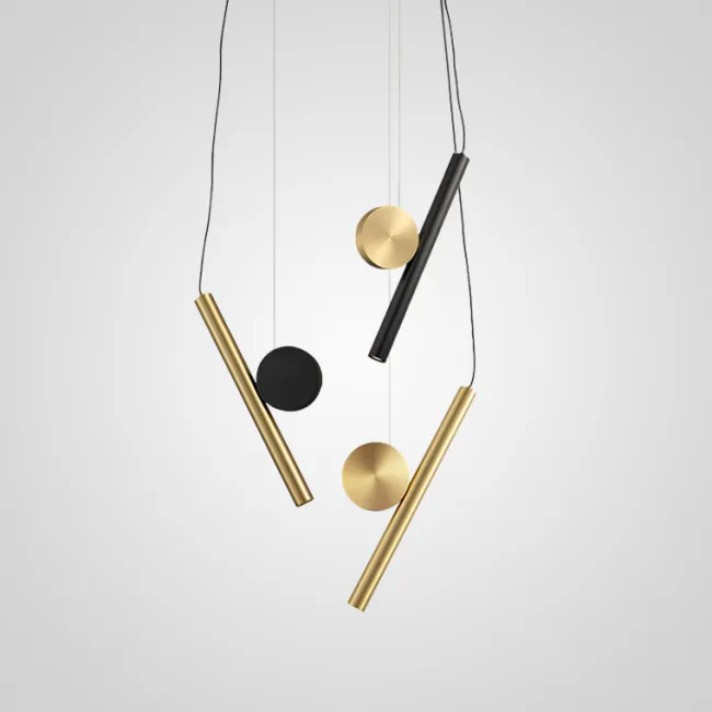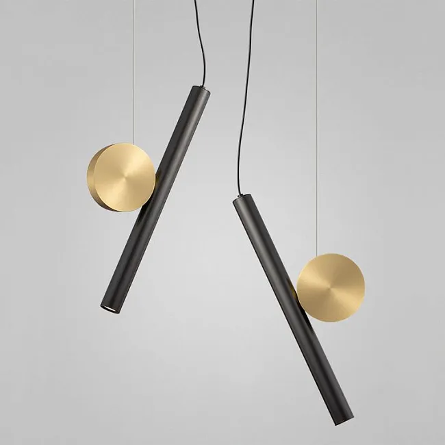 Подвесной светодиодный светильник в виде комбинации вытянутого цилиндрического плафона и декоративного диска