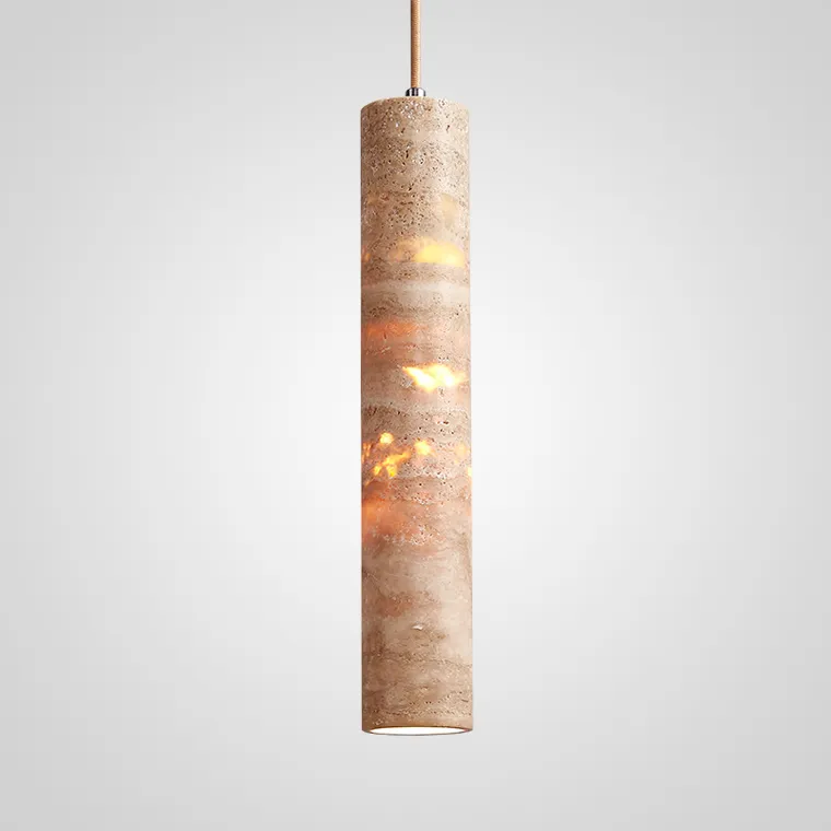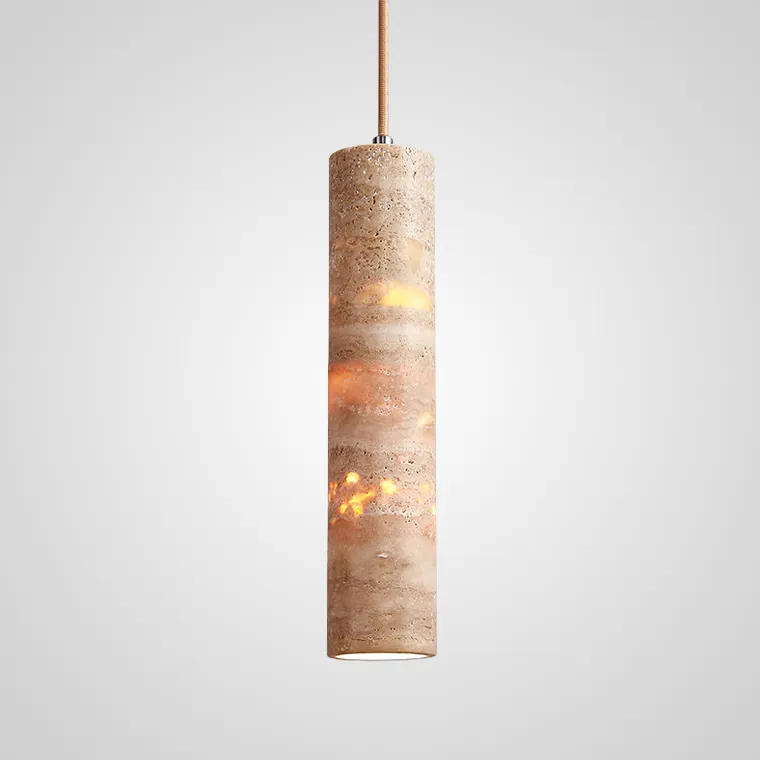 Серия подвесных светильников с цилиндрическим корпусом из натурального травертина