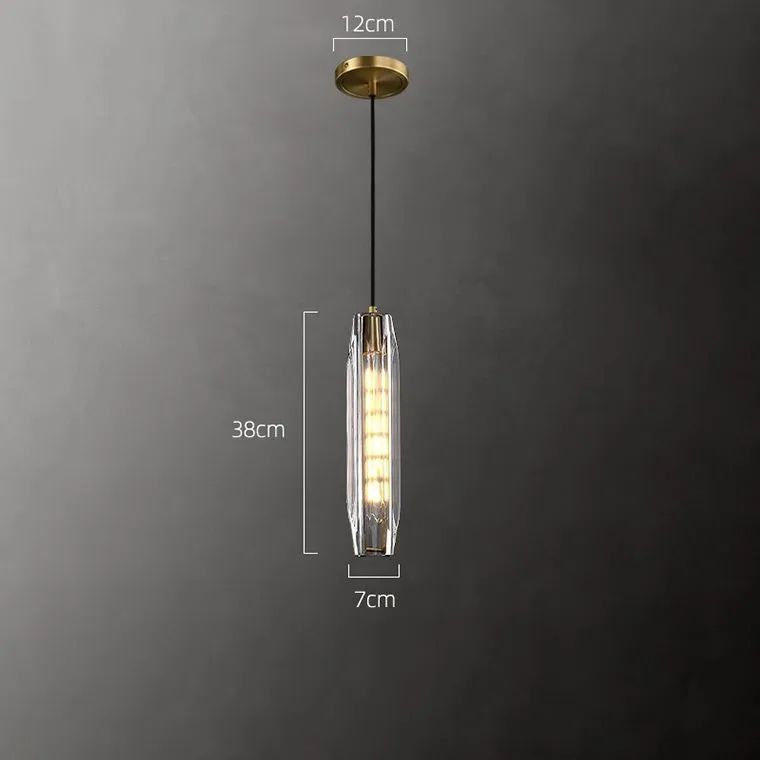Дизайнерский подвесной светильник с вытянутым цилиндрическим плафоном из ограненного хрусталя К9