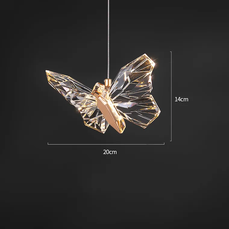 Подвесной светодиодный светильник в виде бабочки с кристальными крыльями