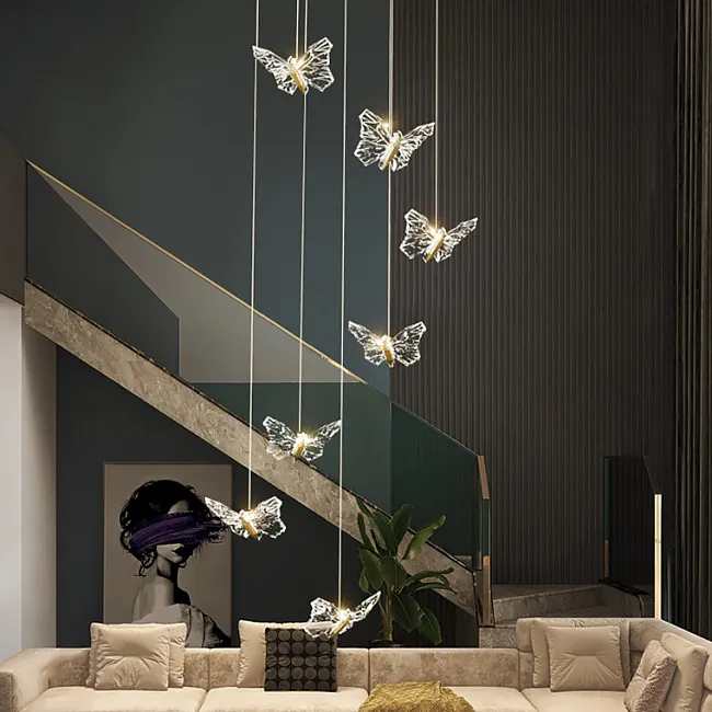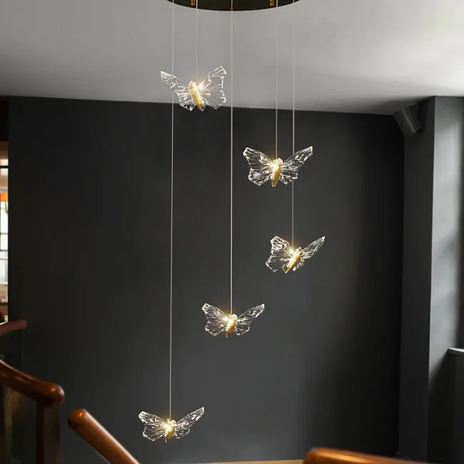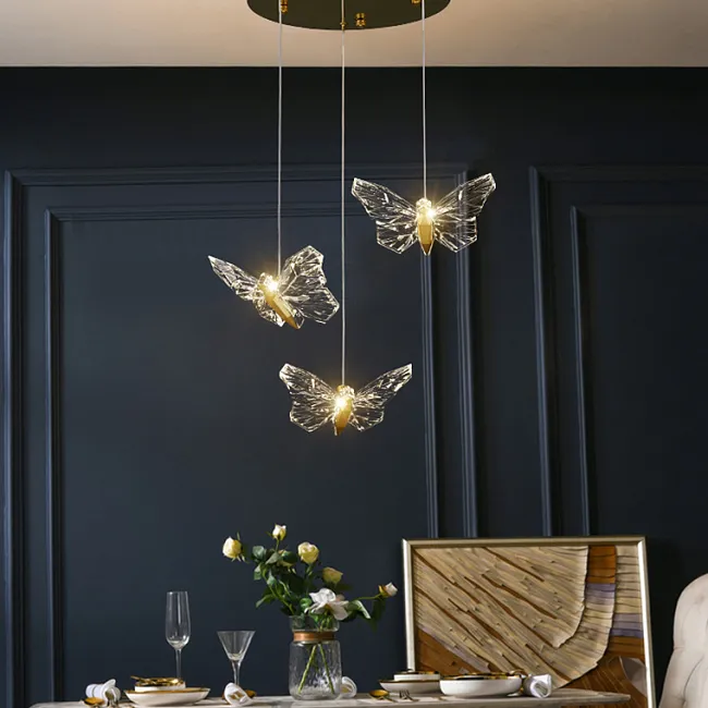 Подвесной светодиодный светильник в виде бабочки с кристальными крыльями