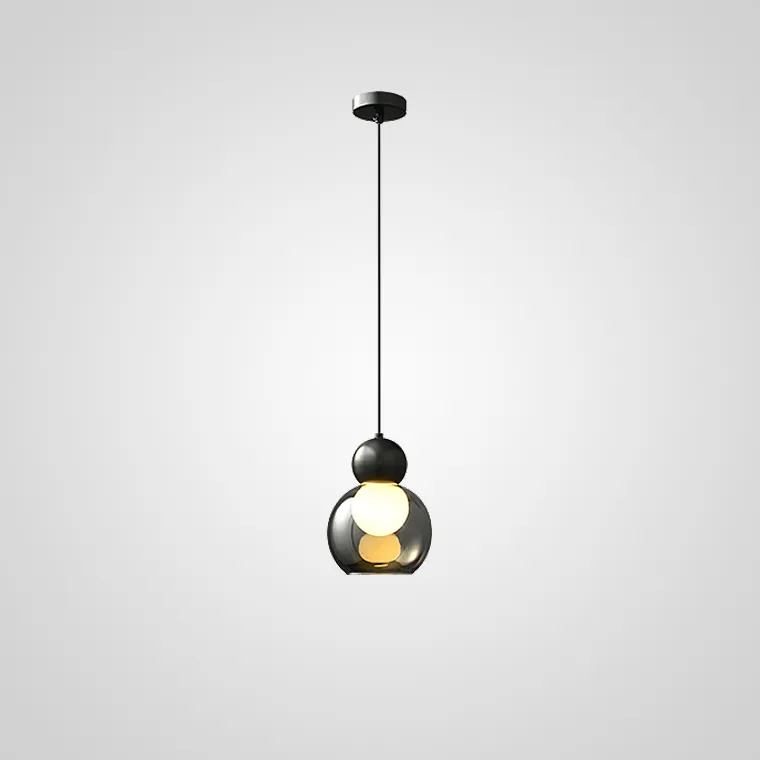 Серия подвесных светильников с шарообразным плафоном в стеклянным корпусе из дымчатого и прозрачного стекла