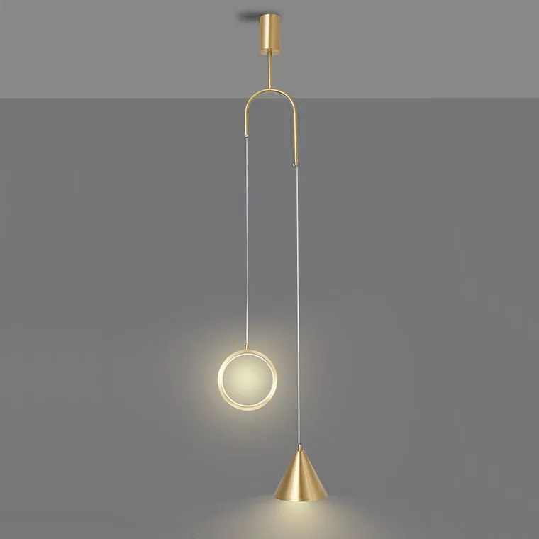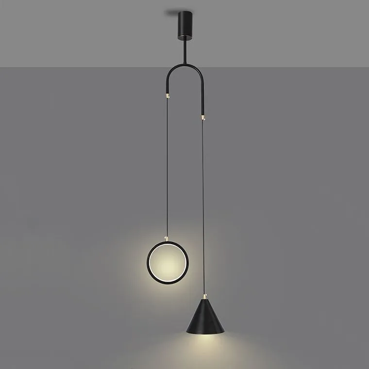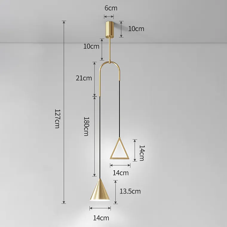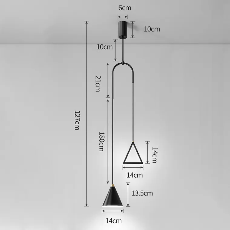 Подвесной светильник с двумя плафонами в форме конуса и треугольника