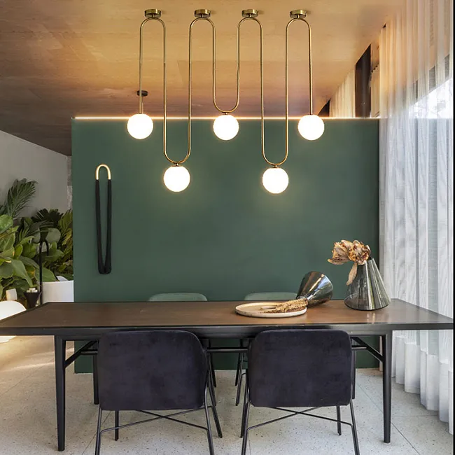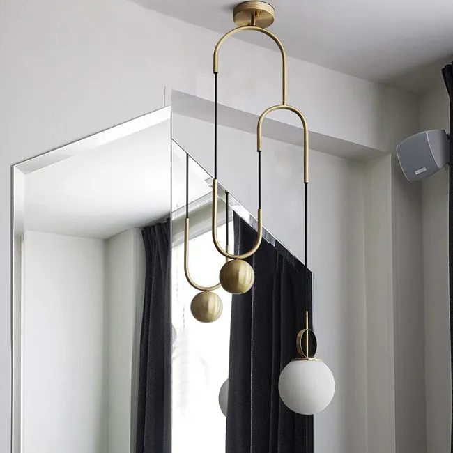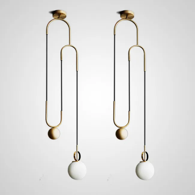 Подвесной светильник с двумя плафонами в форме конуса и треугольника