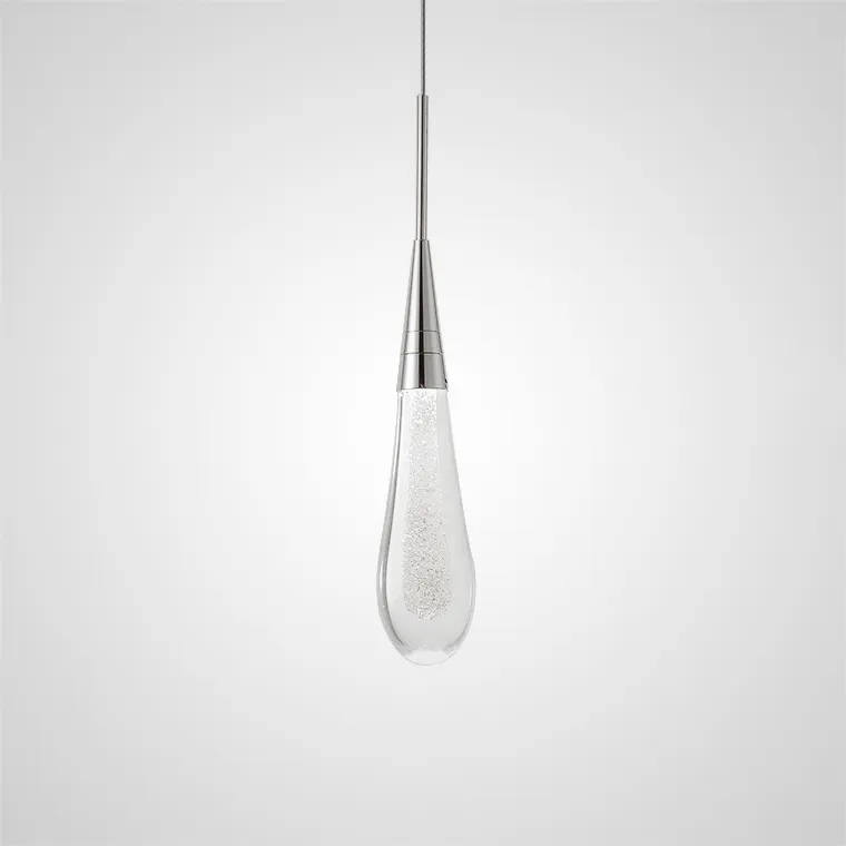 Подвесной светильник Fial Chrome - идеальное решение для тех, кто хочет добавить в свой интерьер капельку роскоши и изыска! Этот стеклянный подвесной светильник в форме капли станет настоящим украшением любой комнаты. Благодаря своим размерам - Ø 6.5 × 30 см и креплению диаметром Ø 10 см, он будет гармонично смотреться в любом помещении, а прозрачный цвет плафона наполнит комнату светом и воздухом.
