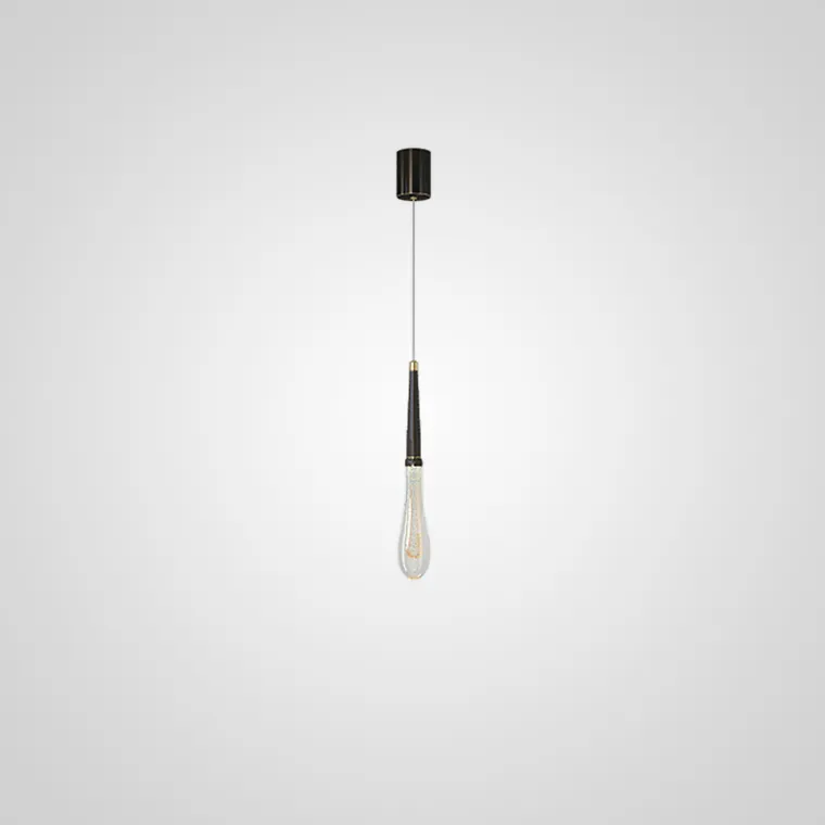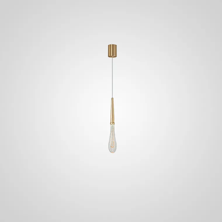 Подвесной светодиодный светильник с хрустальным каплевидным плафоном с эффектом воздушных пузырьков в вытянутом коническом держателе