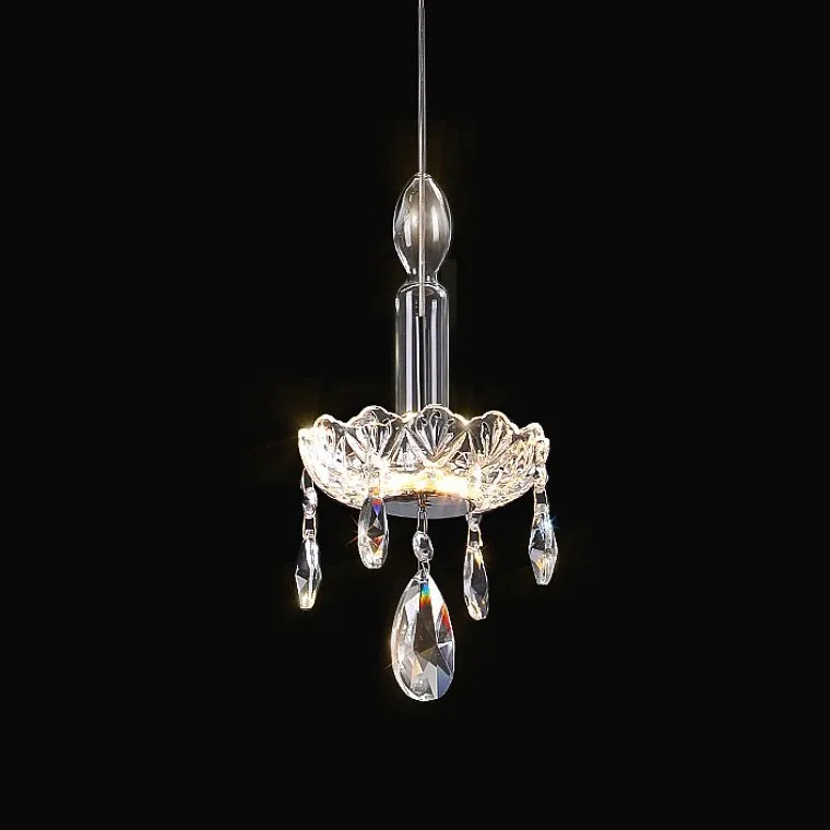 Элегантный подвесной светильник в форме свечи с основанием в виде хрустальной декоративной чаши, украшенной подвесками в виде капель