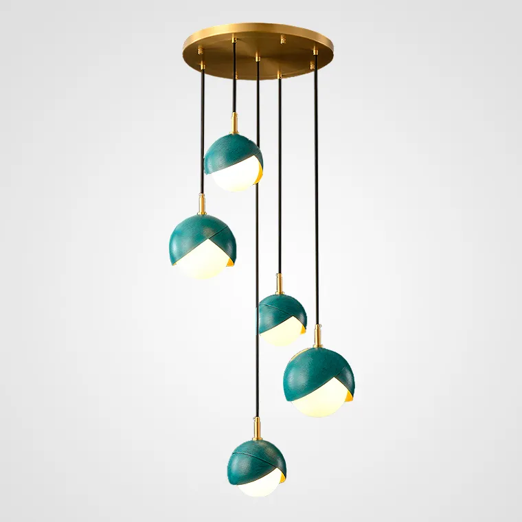 Комбинация подвесных светильников FLORIS 5 в виде стилизованных цветочных бутонов с матовыми стеклянными плафонами в корпусе из художественно окрашенного металл
