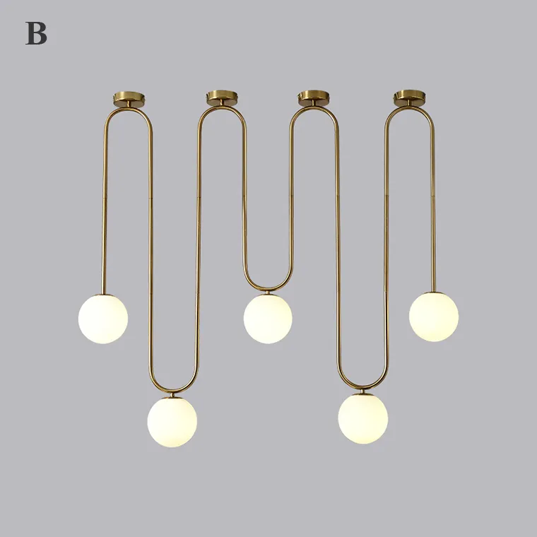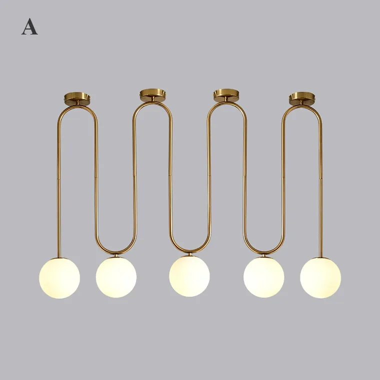 Барный светильник с плавным изогнутым корпусом и шарообразными матовыми плафонами из стекла