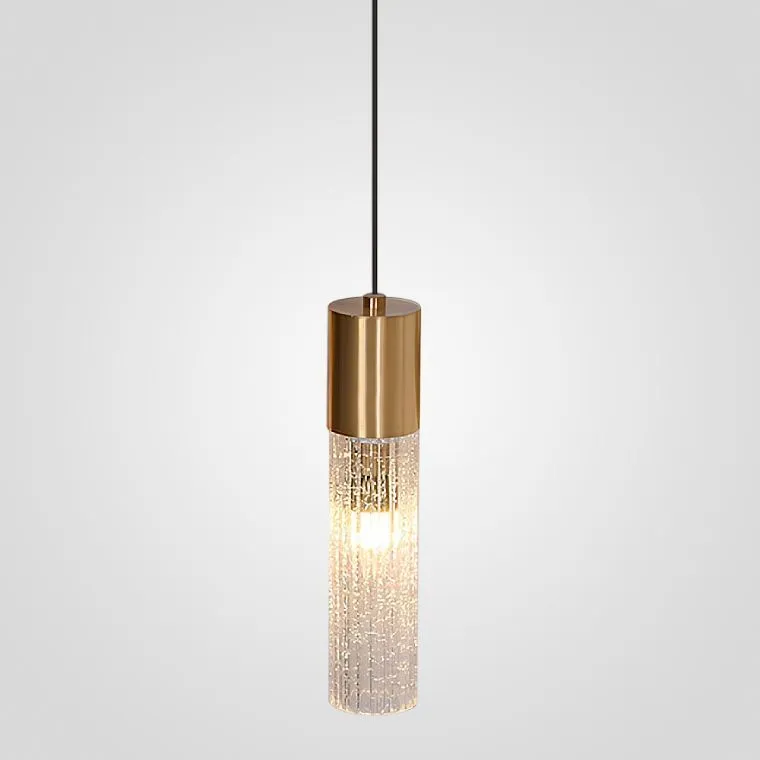 Подвесной светильник с цилиндрическим корпусом из фактурного, кракелированного стекла и латуни