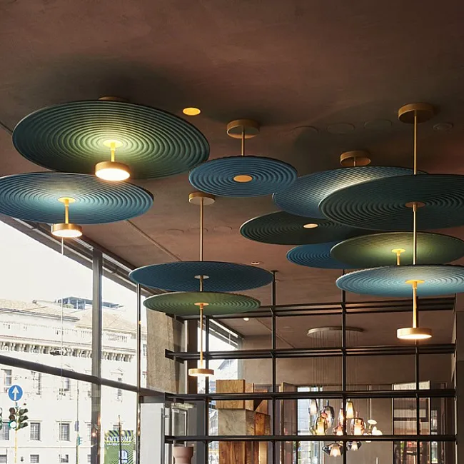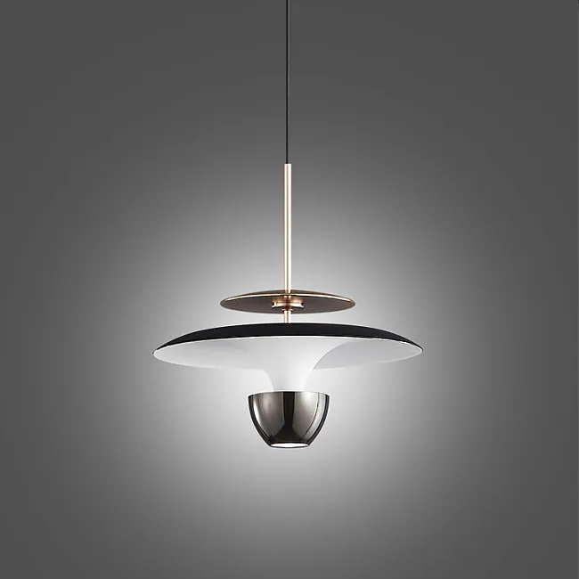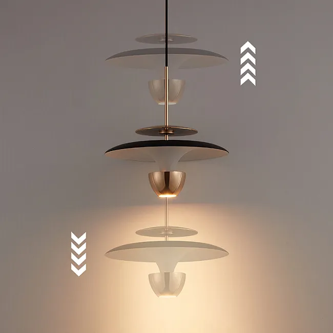 Конусовидный направленный источник света мягко рассеивается через дисковидный рассеиватель, создавая идеальное освещение для вашего кухонного стола, ресторана или кафе. А теперь представьте, что вы можете выбрать из двух цветов конусовидных рассеивателей — хром или насыщенный красный. Смешайте их, создайте уникальную композицию, которая подчеркнет стиль вашего заведения и подарит гостям незабываемые эмоции.