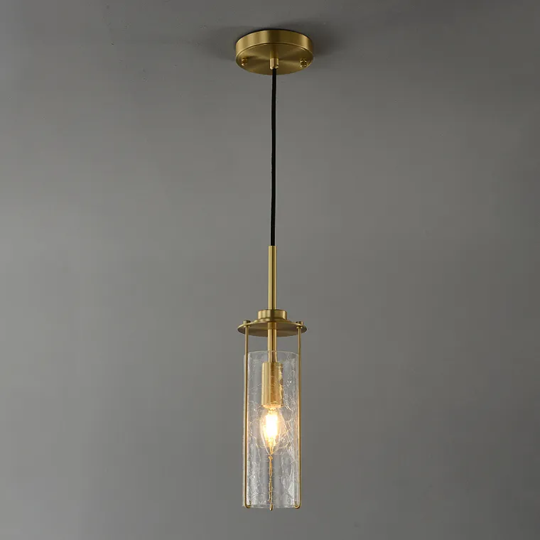 Подвесной светильник с цилиндрическим плафоном из кракелированного стекла в металлическом держателе