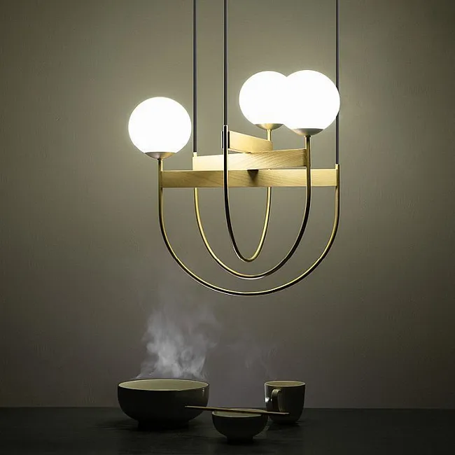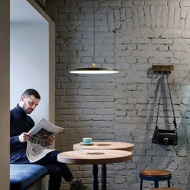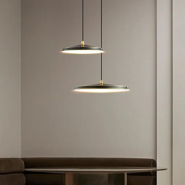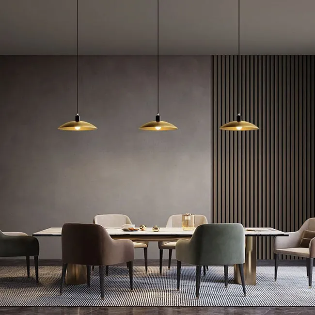 Подвесной светодиодный светильник с дискообразным рассеивателем из натуральной латуни