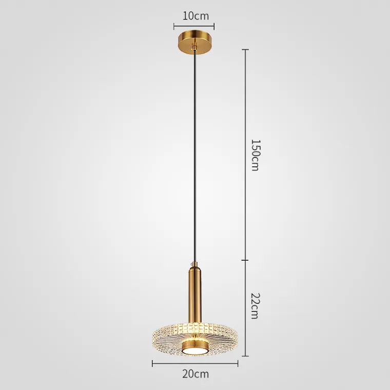 Подвесной светодиодный светильник с вытянутым цилиндрическим плафоном и рельефным дисковидным рассеивателем