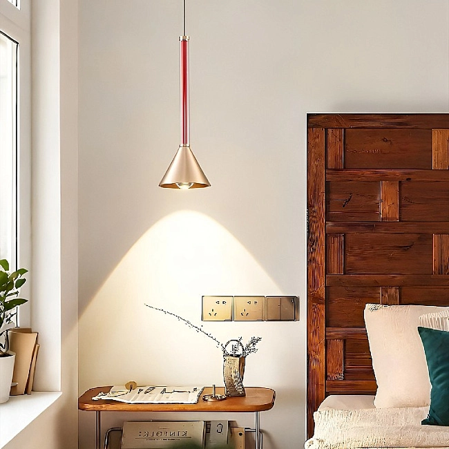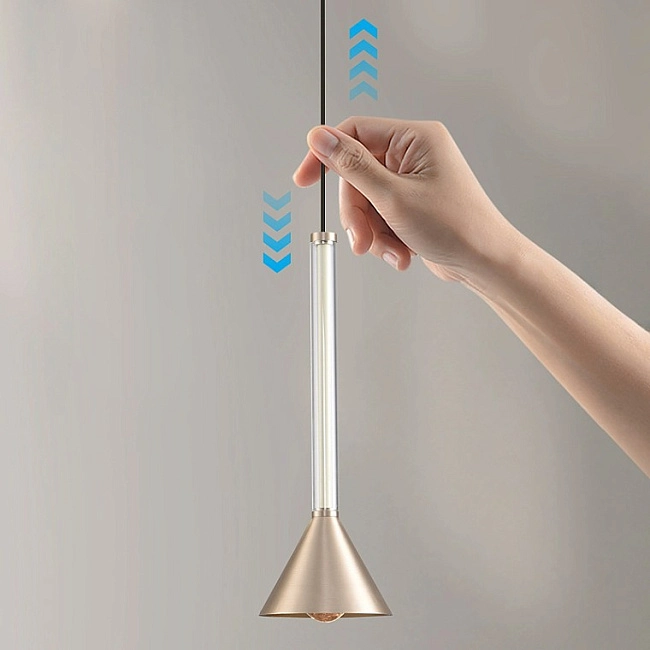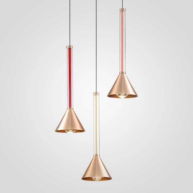 Серия подвесных светодиодных светильников с цилиндрическим корпусом и коническим плафоном с оптической линзой