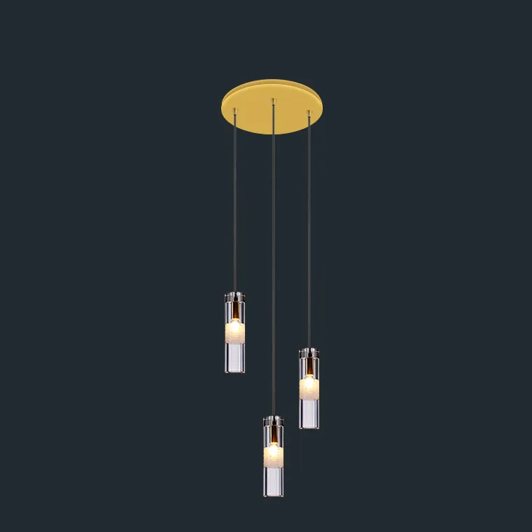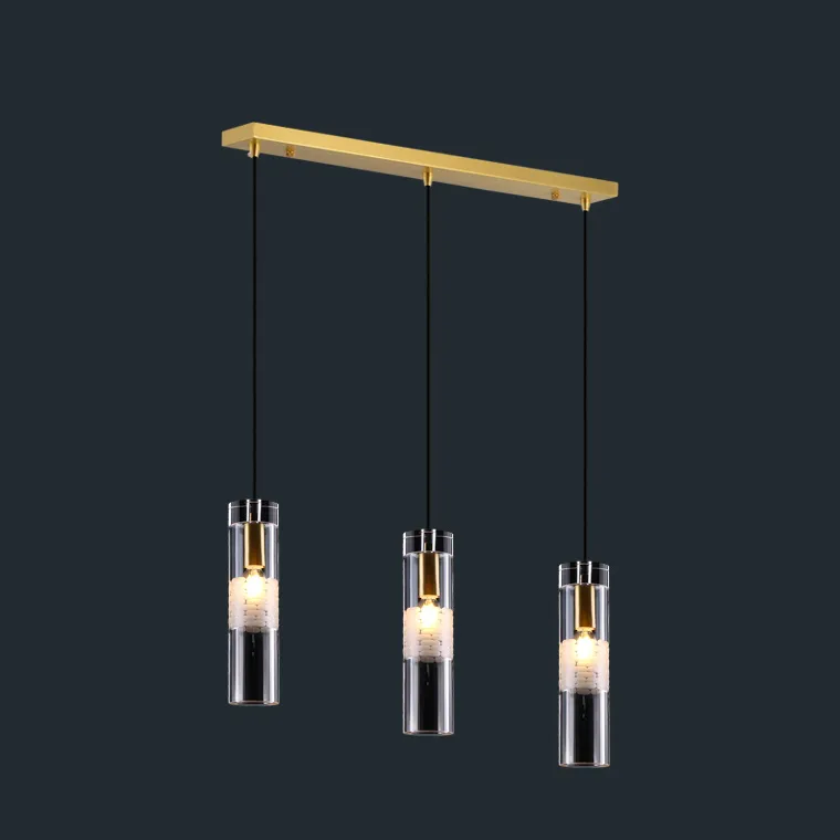 Готовая комбинация подвесных светильников с цилиндрическими плафонами из хрусталя с декоративной пузырьковой гравировкой белого цвета