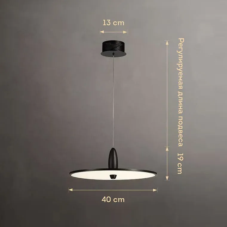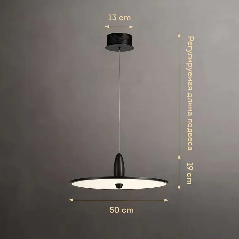 Серия подвесных светильников в виде диска с LED свечением и направленным линзированным источником посередине