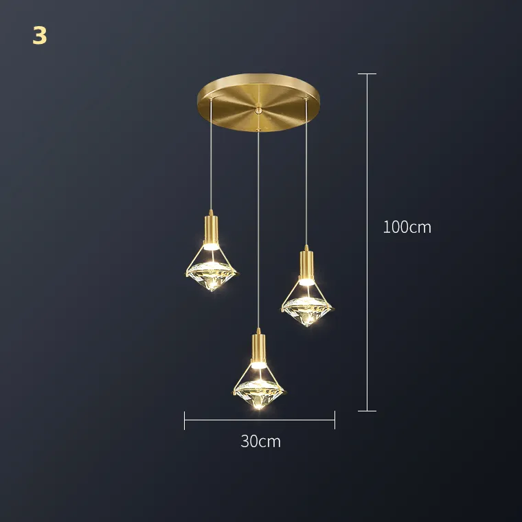 Готовая комбинация подвесных светильников с цилиндрическими плафонами и кристальными рассеивателями в виде бриллиантов