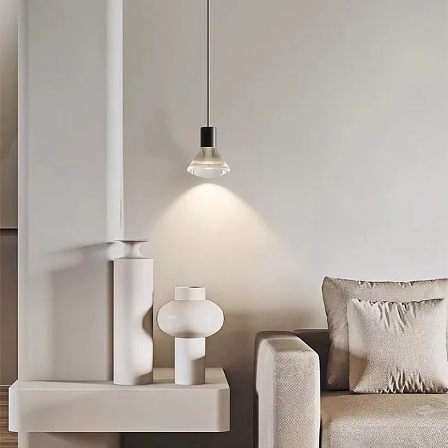 Цвета каркаса доступны в белом или черном варианте, что позволяет подобрать светильник под любой интерьер. Высота подвеса составляет 30 см на стойке, что делает его идеальным для использования над обеденным столом или рабочей зоной.