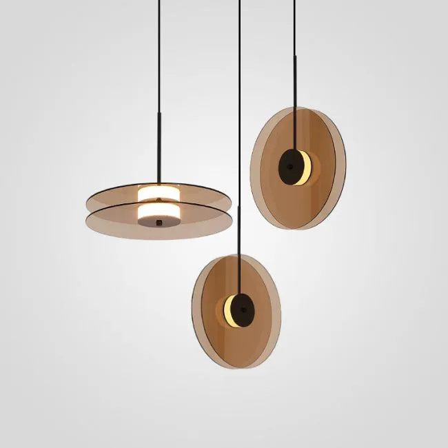 Подвесной светильник конической формы с двумя дисками из дымчатого стекла