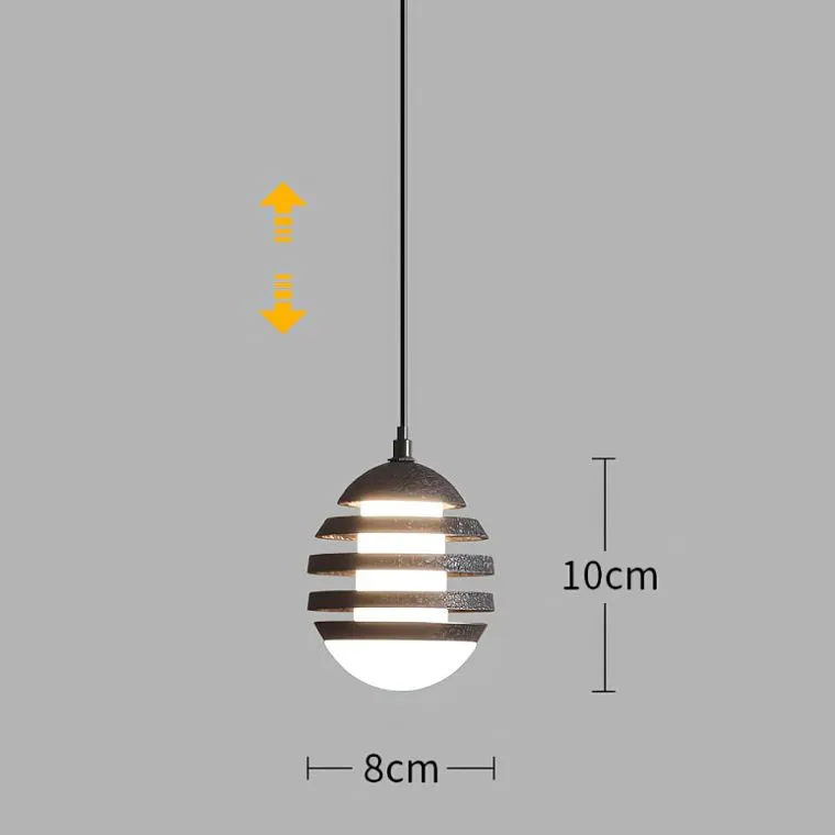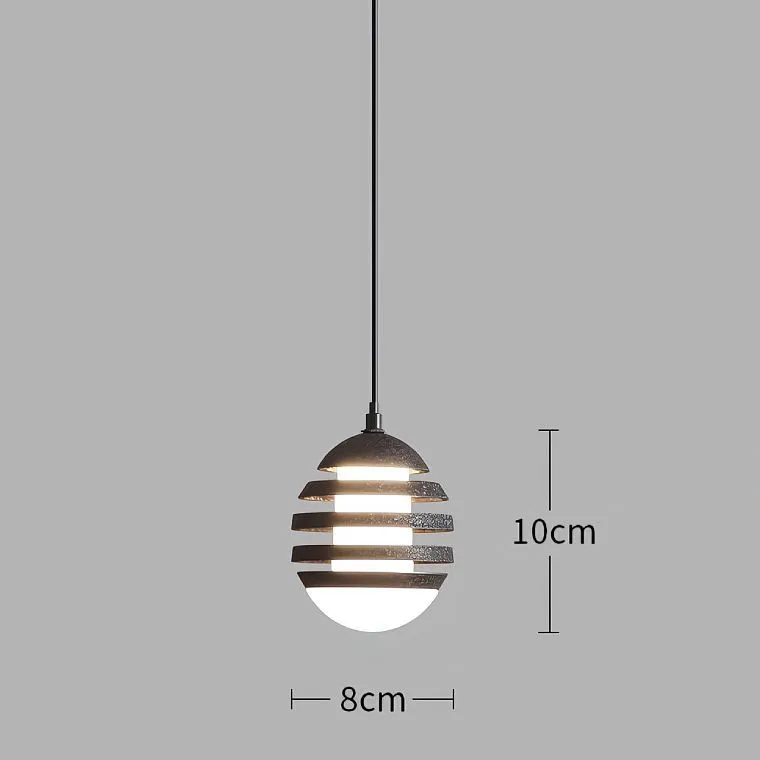 Подвесной светильник с цилиндрическим LED источником внутри овального корпуса с прорезями и фактурной поверхностью