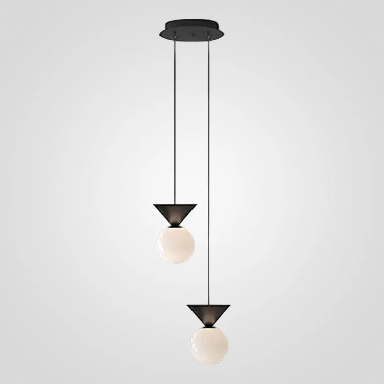Серия подвесных светильников с шарообразным плафоном из молочного стекла на коническом держателе
