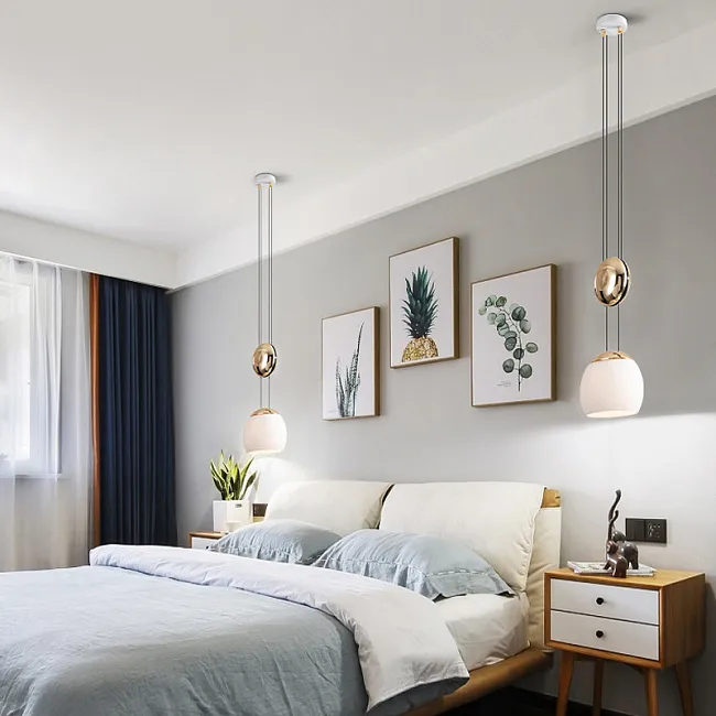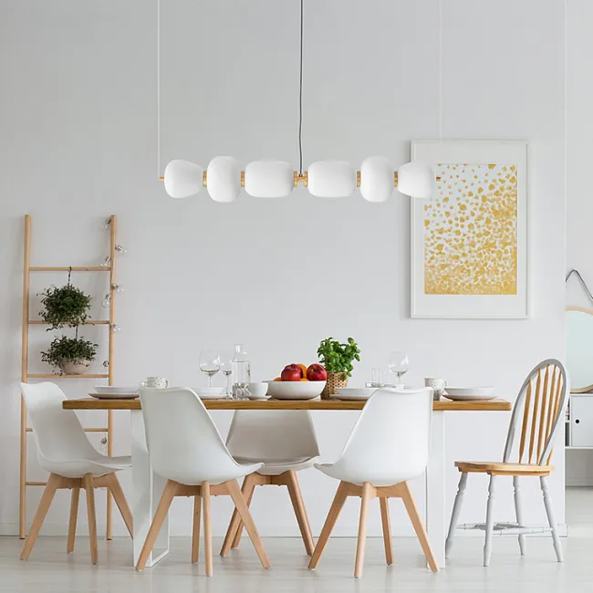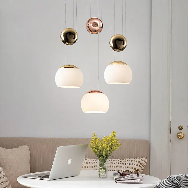 Серия подвесных светодиодных светильников с шарообразными плафонами из белого матового стекла