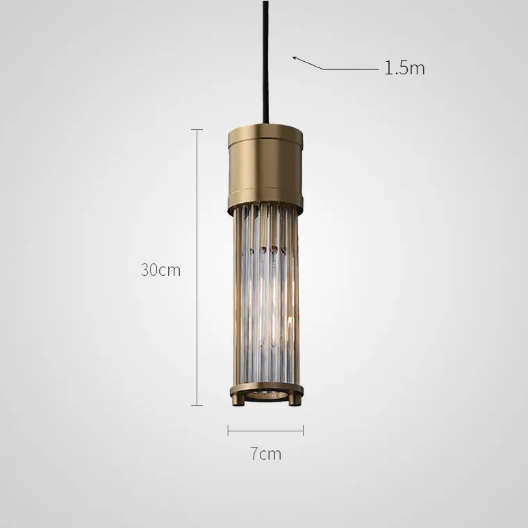 Подвесной светильник с цилиндрическим плафоном из стеклянных стержней в бронзовой оправе