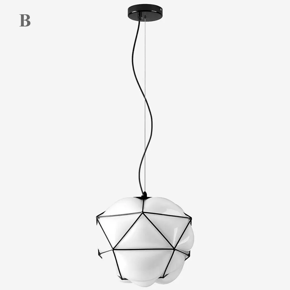 Подвесной светильник из дутого молочного стекла в обрамлении черного каркаса