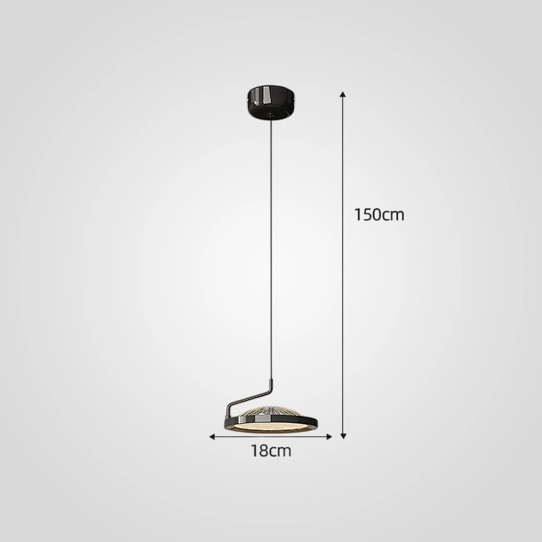 Подвесной светильник с выпуклым дисковым рассеивателем на изогнутом креплении