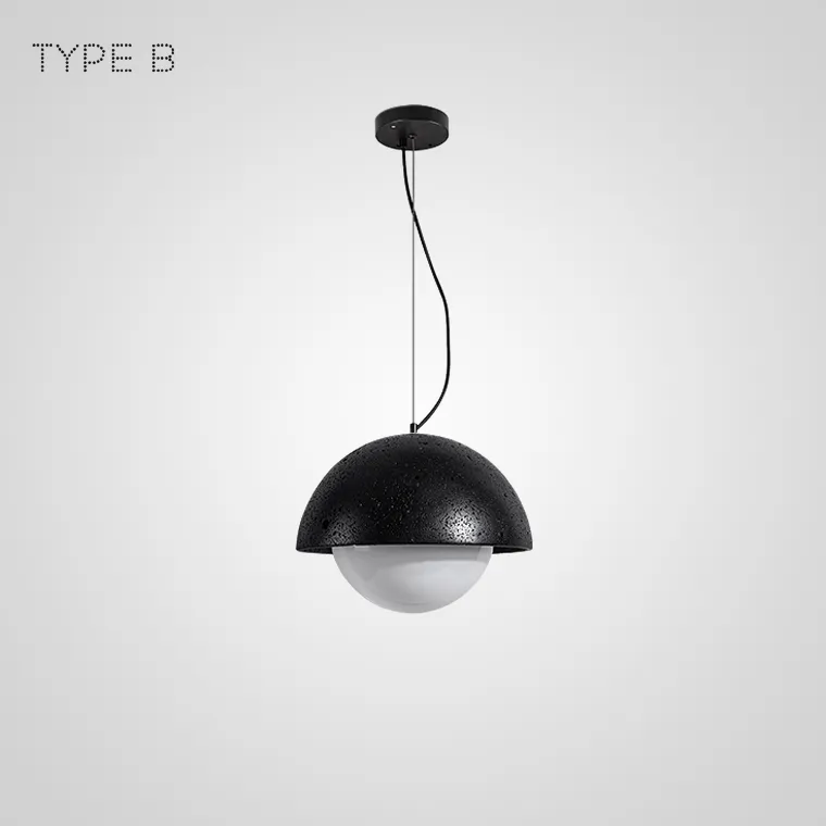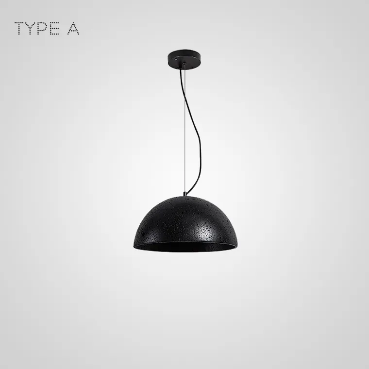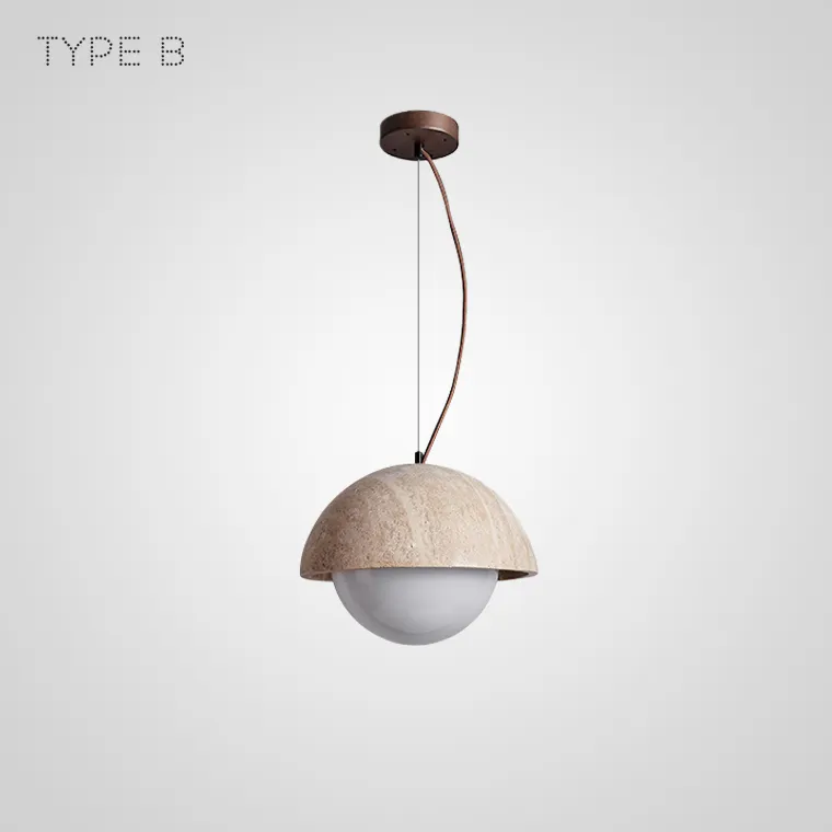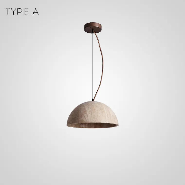 Серия подвесных светильников с купольным абажуром из травертина и лавового камня
