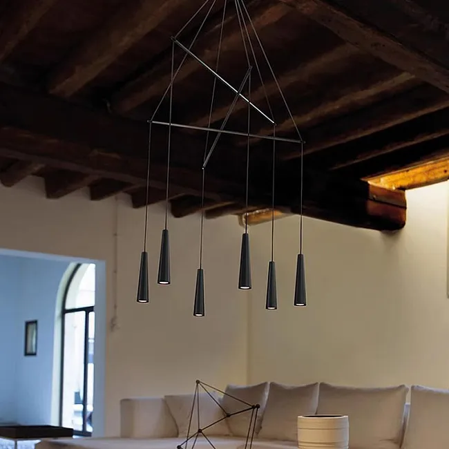 Серия подвесных светильников с купольным абажуром из травертина и лавового камня
