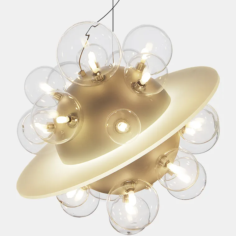 Подвесной светильник IONA UFO в виде шара с прозрачными шарообразными плафонами разного диаметра и кольцевым элементом с LED подсветкой сделает ваш интерьер незабываемым. Космический инопланетный элемент в дизайне комнаты сделает привычную обстановку загадочной и яркой. При этом общая обстановка комнаты не перегружается и в ней остается много воздуха, благодаря прозрачным стеклянным формам. Очень динамичная и стильная модель подчеркнет вкус хозяев дома и их активную жизненную позицию.