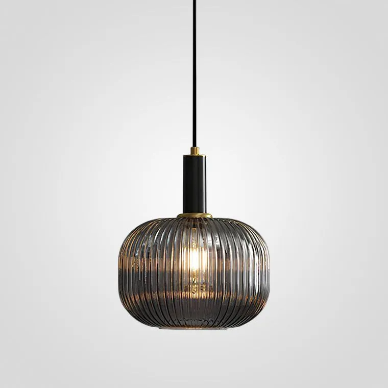 Серия подвесных светильников с рельефными плафонами из дымчатого стекла