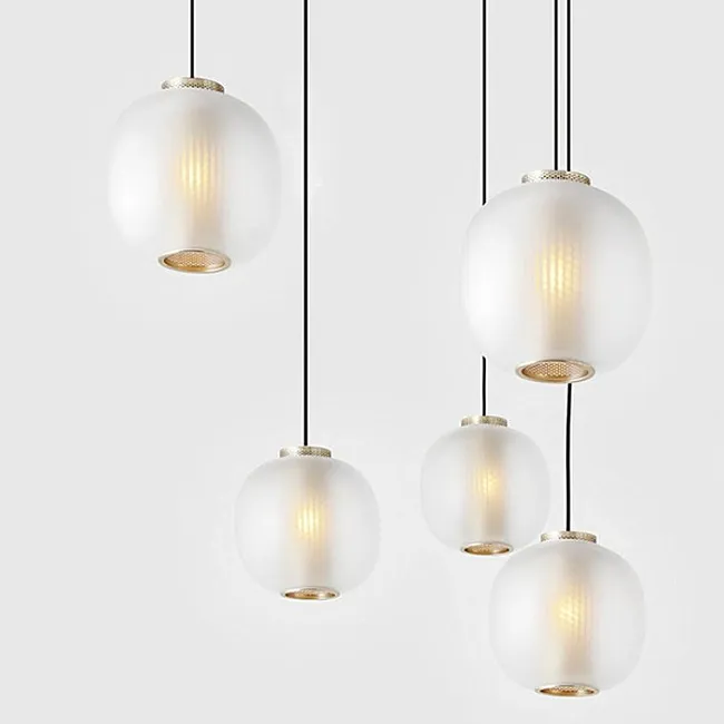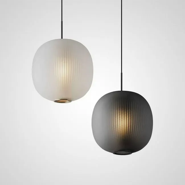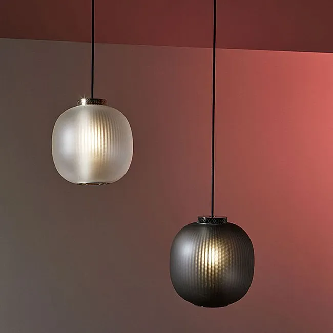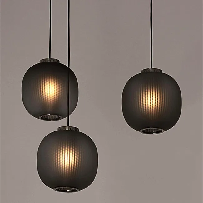 Серия подвесных светильников с рельефными плафонами из дымчатого стекла