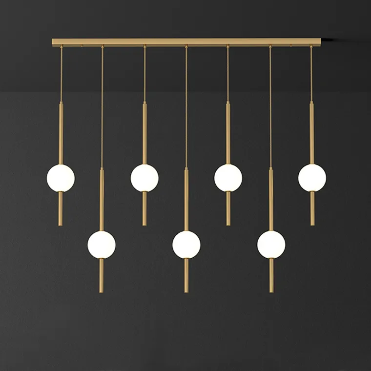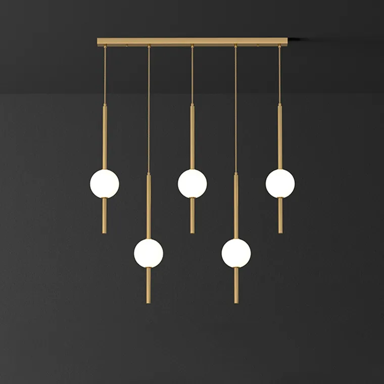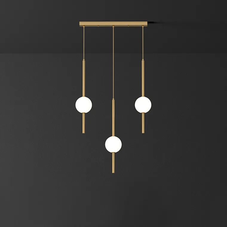 Готовая комбинация подвесных светодиодных светильников с белыми шарообразными плафонами из стекла