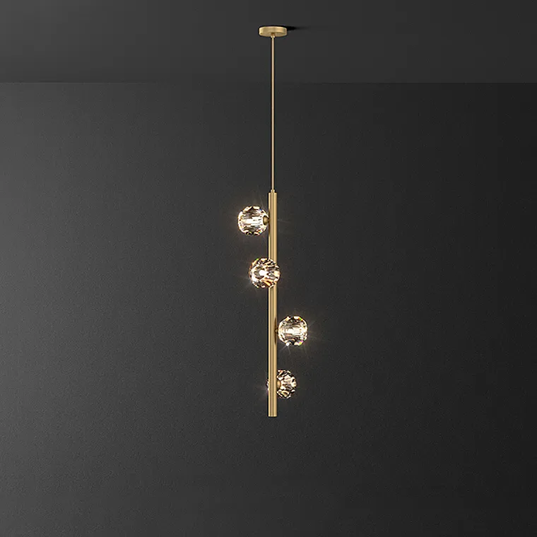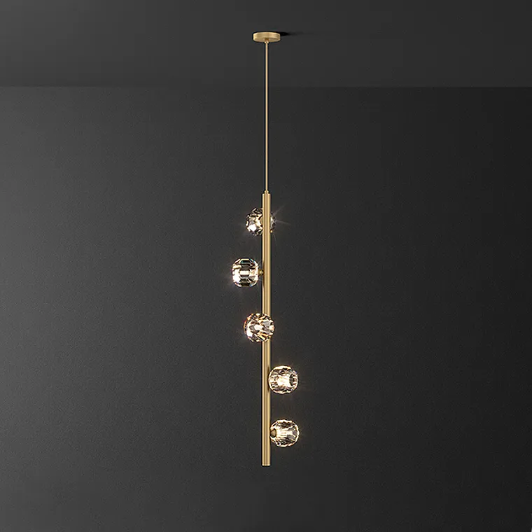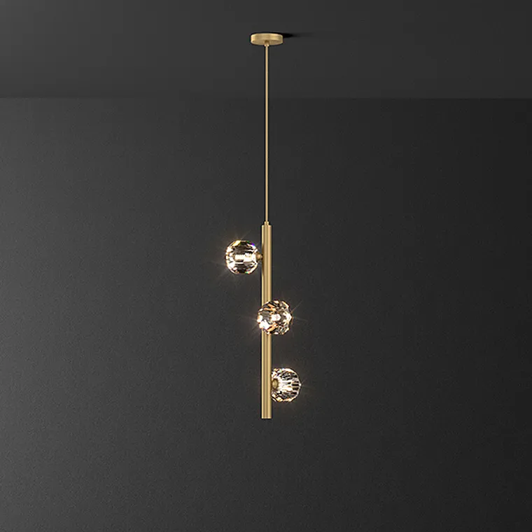 Серия дизайнерских светильников с многогранным плафонами из хрусталя на латунном трубчатом корпусе