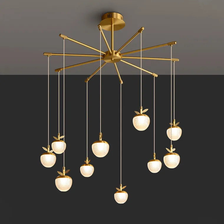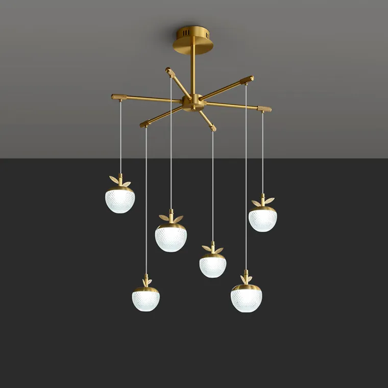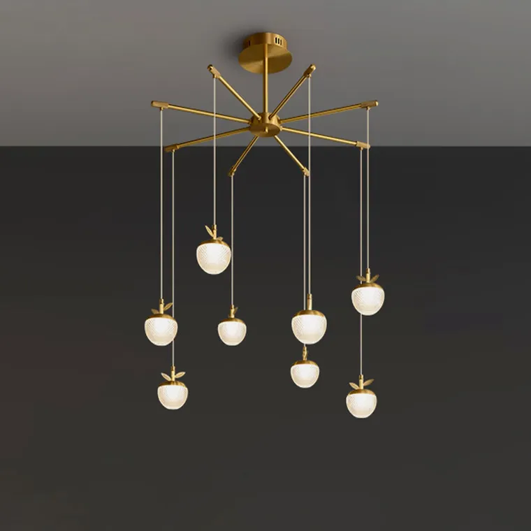 Готовая комбинация подвесных светодиодных светильников c шарообразными рельефными плафонами, стилизованными под ягоды с латунными листьями