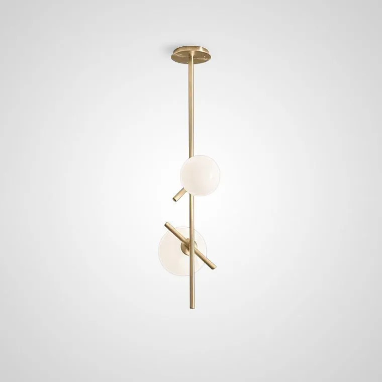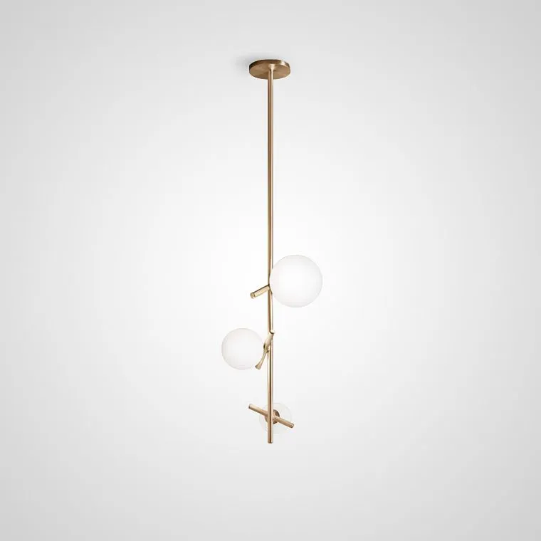 Каждый плафон украшен декоративным латунным элементом в виде небольшой рейки у основания, добавляющим легкую игривость и утонченность. Плафоны направлены в разные стороны, создавая прекрасное рассеяние света и заполняя пространство мягким, теплым сиянием. Латунная стойка придает композиции современный, но в то же время винтажный шарм.