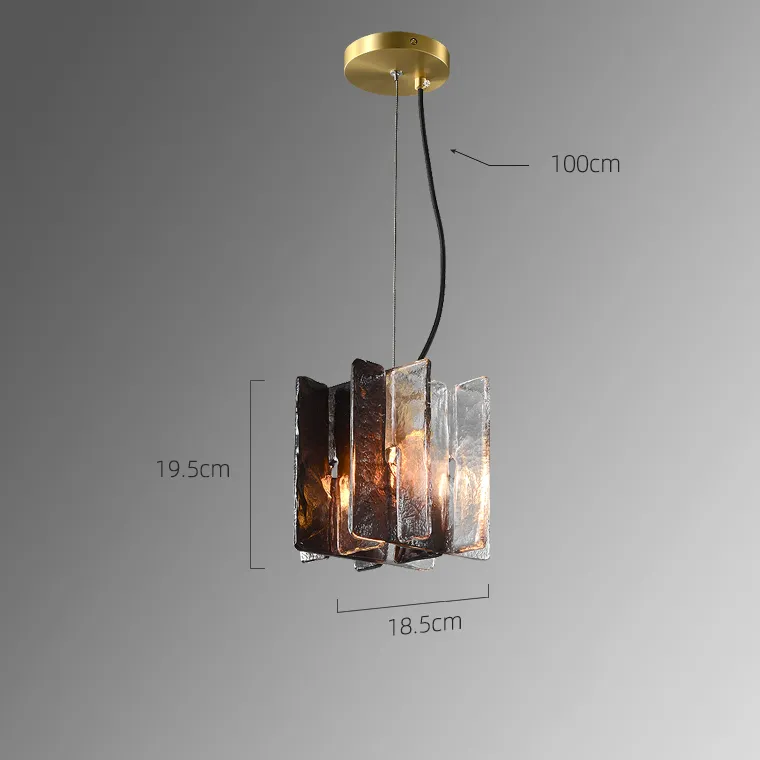 Подвесной брутальный светильник с геометричным абажуром из фактурного текстурированного стекла