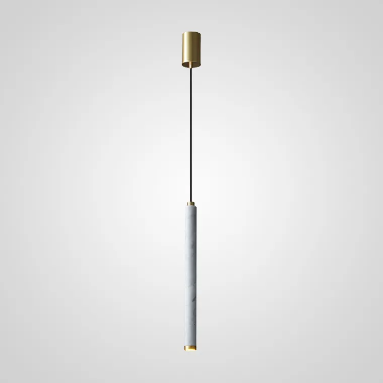 Подвесной светодиодный светильник с вытянутым цилиндрическим корпусом из белого мрамор