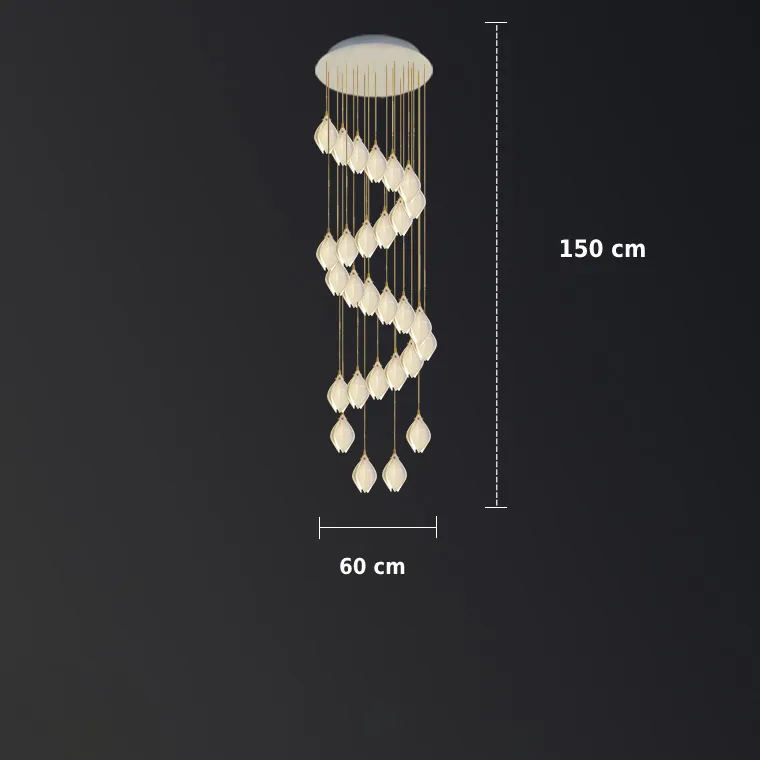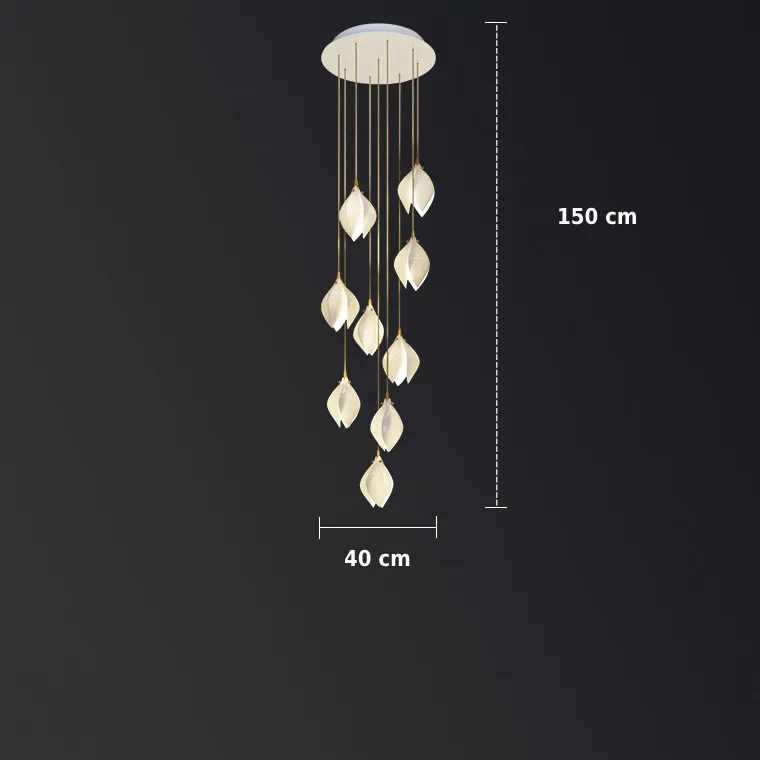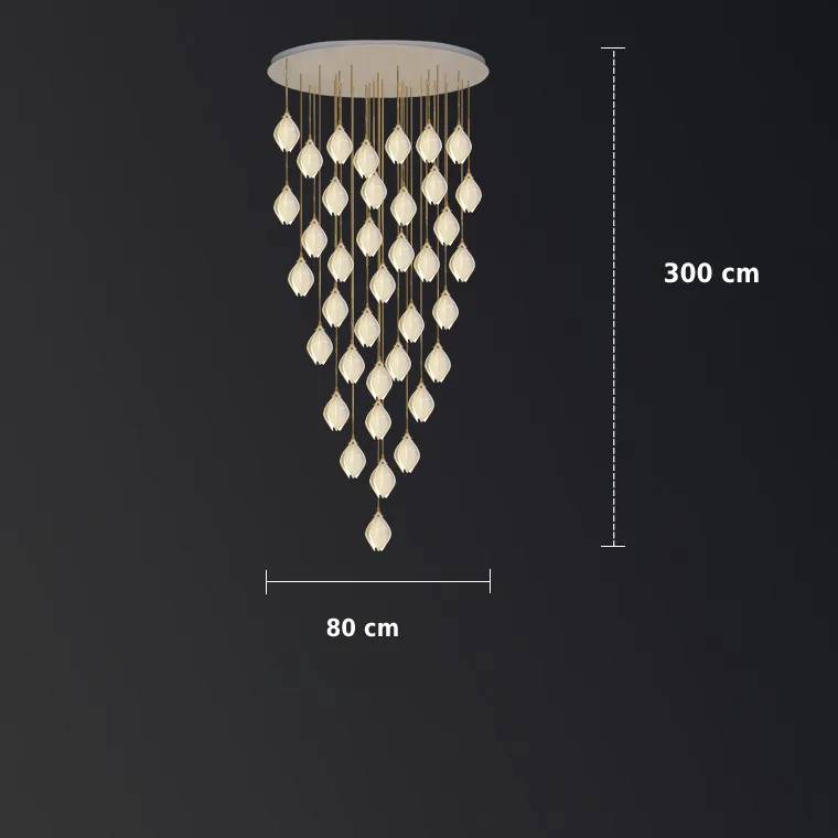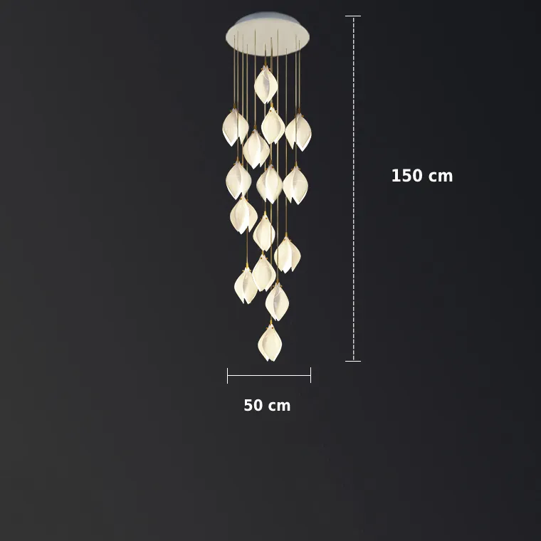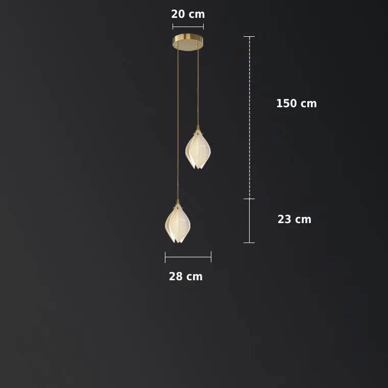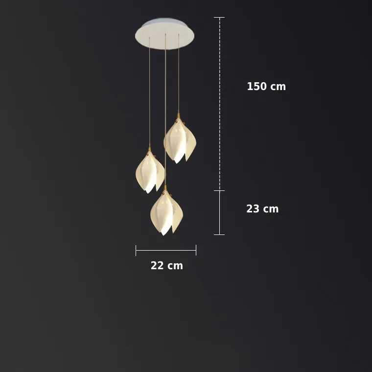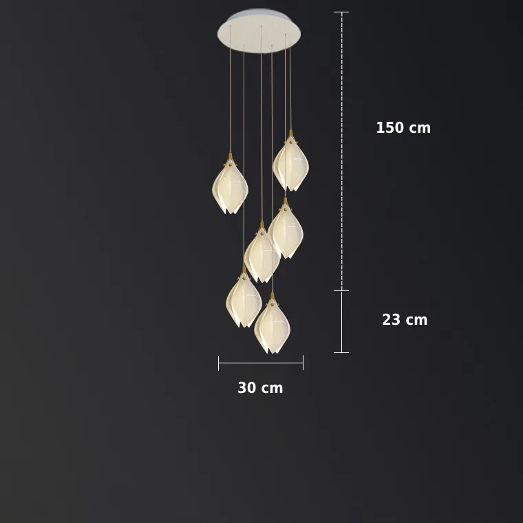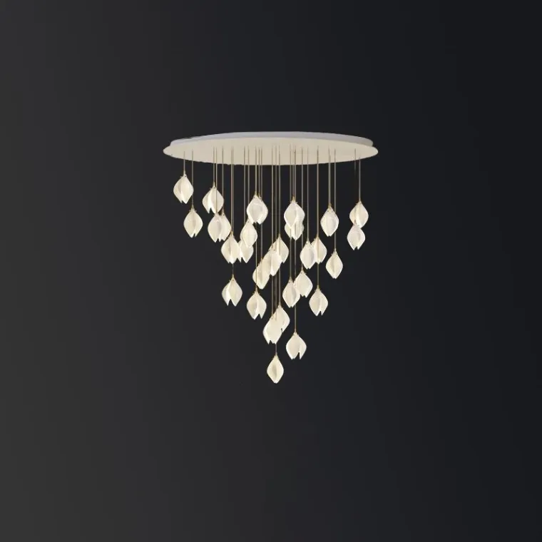 Готовая комбинация подвесных светильников с каплевидными плафонами из нефритового фарфора в форме белых бутонов